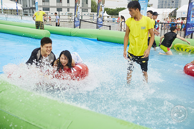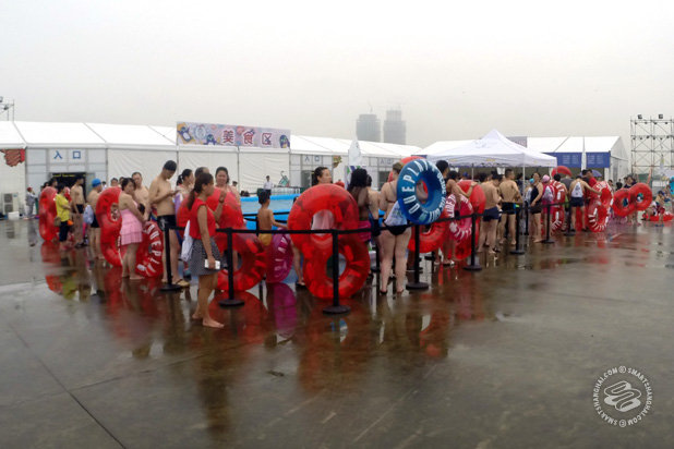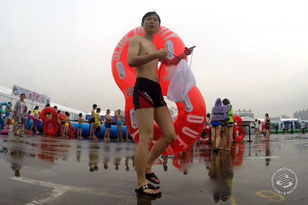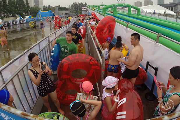 There’s two: Bouncey Water Castle Thing is 60rmb. For 10 minutes. 10-meter By 10-meter Kiddie Pool is 20rmb. For 10 minutes.