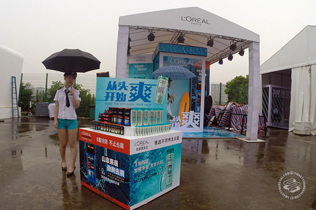 The Shanghai one is built on a bunch of iron scaffolding on some anonymous concrete lot in Pudong, with the ghost freighter ships of the Huangpu slipping wordlessly into the fog in the background, and abandoned, half-constructed skyscrapers disappearing into the sky. A deep and resolute haze looms over everything. It's definitely an experience that's about a thousand percent more "Soviet" than what's going on in those videos from the States. Kinda feels like the ground might open up any second like -GAH-CHUNK- and some massive, Cold War-era CCCP ballistic nuclear warhead missile might start inching its way menacingly upwards, beginning it's fateful journey to Reagan's America.