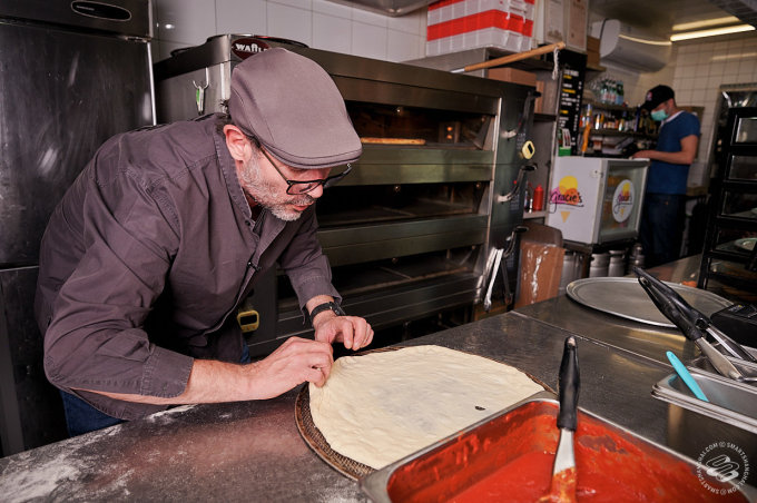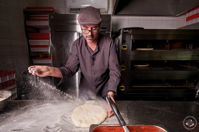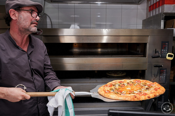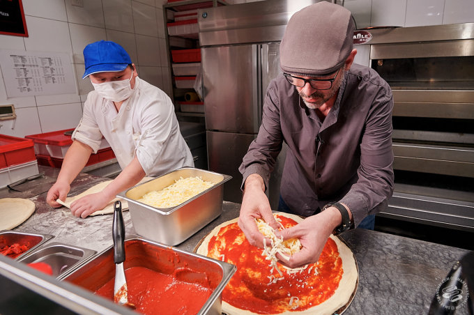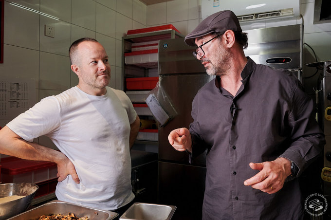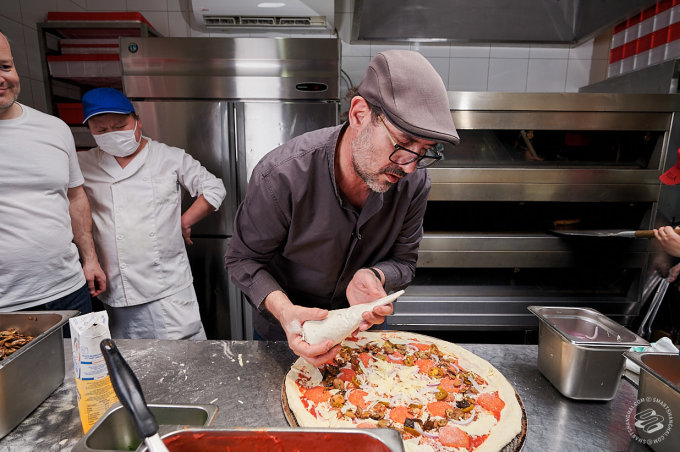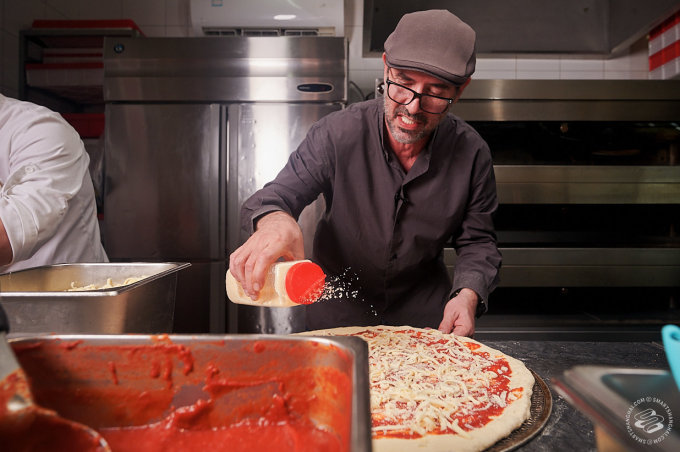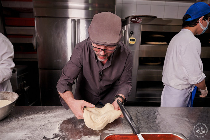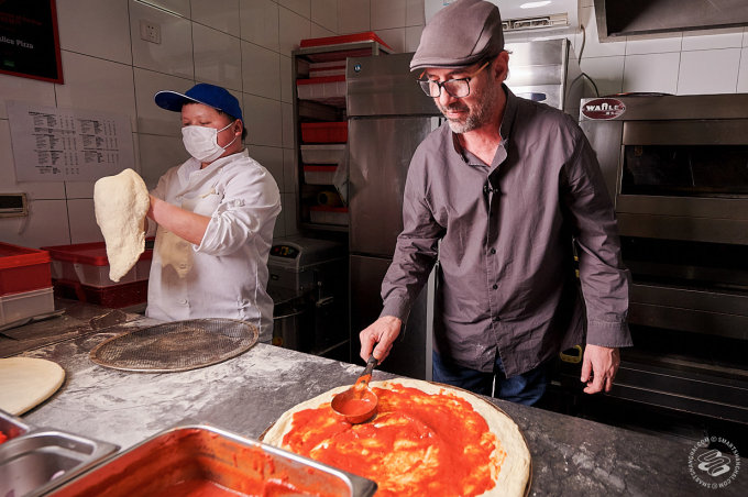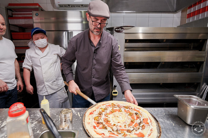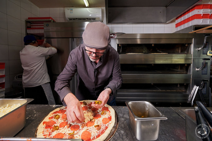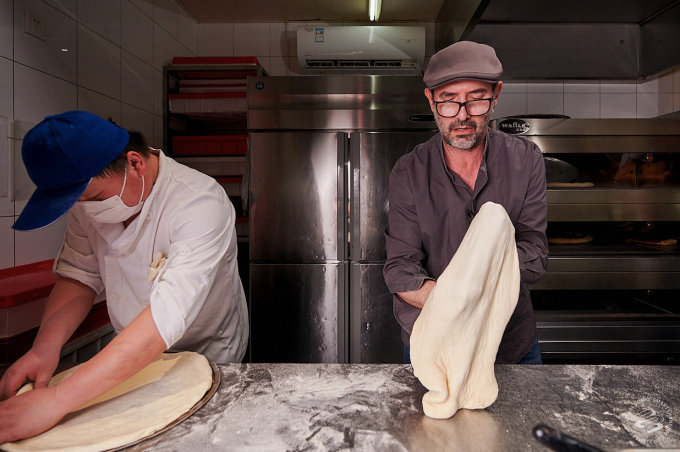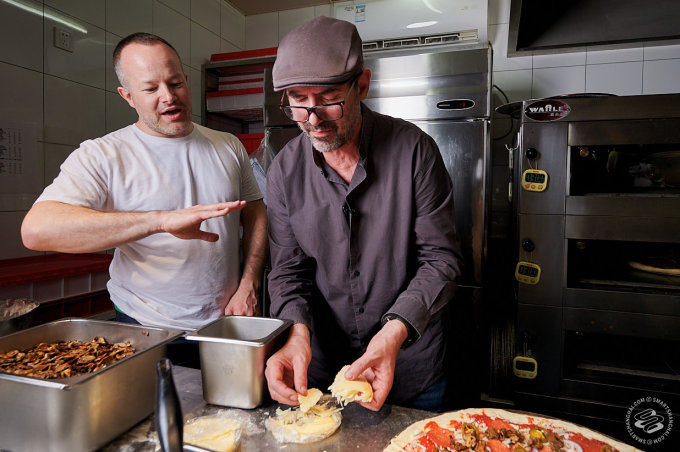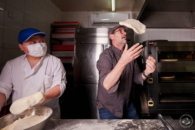Pairet was having none of that. We had managed to convince him to come down to one of his favorite pizza places in the city (he likes Mercato too). That's where our plan died. "Allez!" he exclaimed, clapping his hands for effect. "Let's go!" We were still setting up lights in front of the pizza counter. "No, no, no static shots," he told us. The SmartShanghai photographer's heart missed a beat. "I'm going to make a pizza! Can I start?"