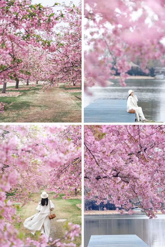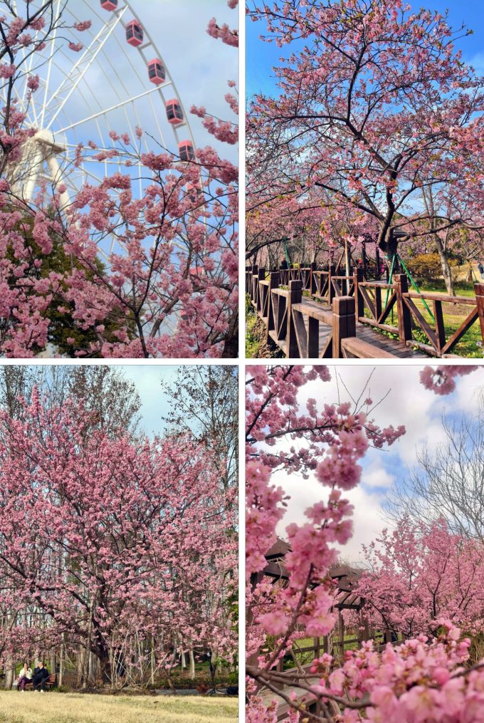 Gucun Park is also one of Shanghai's most reliable cherry blossom spots, especially for early-blooming varieties like Kawazu and Somei-Yoshino. The best areas right now are the wooden boardwalk near Gate 1 and the riverside paths by the Ferris wheel, all offering open space and dense blossoms.