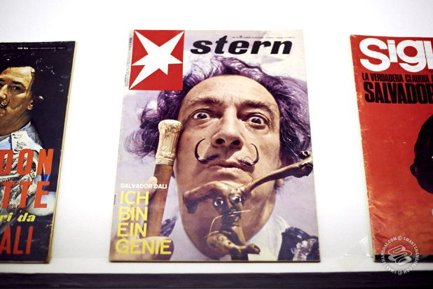 Anyway, magazine covers and excerpts are the mainstay at this exhibition, including those designed by Dalí himself, reproductions of his works or images, or Dalí-created advertisements for everything from Elsa Schiaparelli’s groundbreaking fashions to Perrier water.