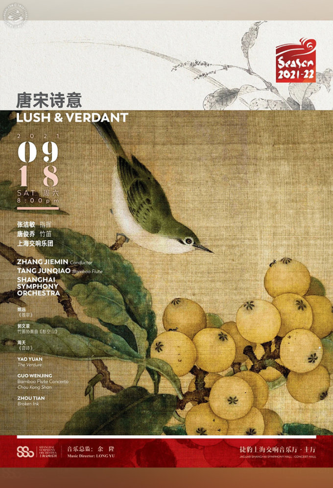 Conducted by Zhang Jiemin, “Lush and Verdant” will be held at the Shanghai Symphony Orchestra on September 18. Program includes “The Verdure” by Yao Yuan and “Broken Ink” by Zhou Tian. Performance begins at 8pm.