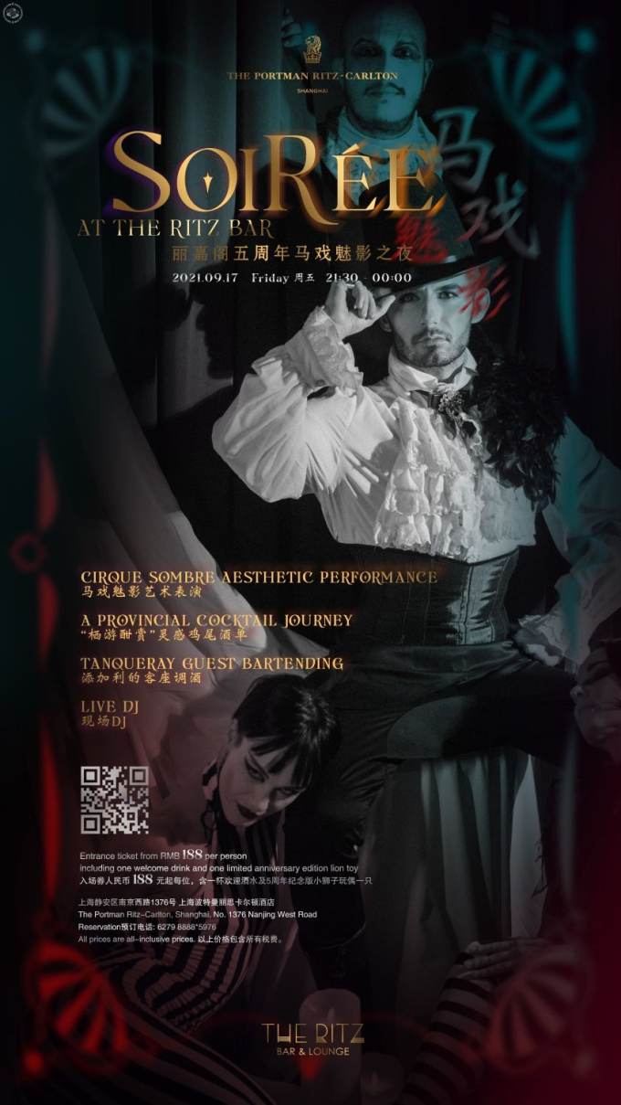 5-star luxury hotel The Portman Ritz-Carlton in Shanghai celebrates its 5th anniversary of The Ritz Bar & Lounge. To celebrate the milestone anniversary, the evening will unfold with Dark Circus Aesthetic performances with a glimmer of story, a group of charismatic characters, a burst of atmosphere, allure of music and a scent of carnival. Discover the new cocktail menu – A Sip of the Orient by Beverage Director Tural Hasanov complemented by Movers & Shakers Series guest bartenders from Tanqueray. Enjoy nibbles and bites created by Executive Chef Xian and live DJ spinning the latest music into the night. 9.30pm til late, reservations required. Tickets start at 168rmb for presale (including one drink).