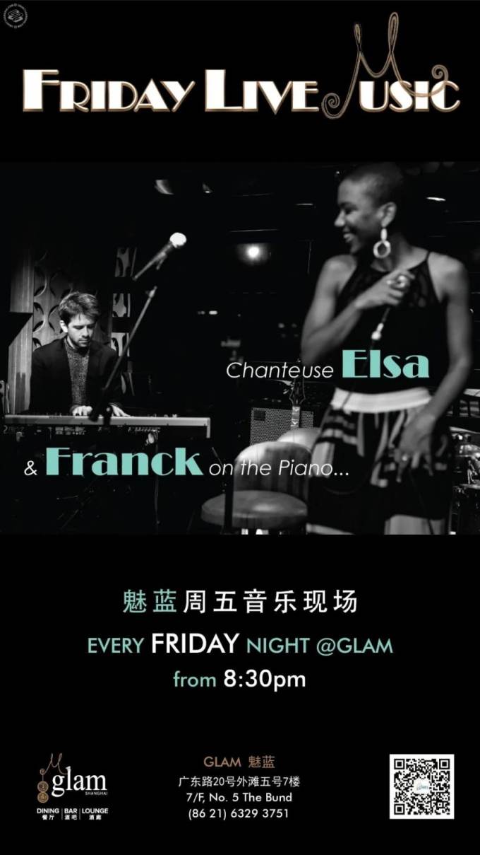Every Friday, join Glam to discover the music of Elsa and Franck, a French singer and pianist duo. At Glam, they'll be performing lounge versions of original songs, a selection of soul, jazz, and French music. There will also be food and cocktails to enjoy. Starts 8.30pm