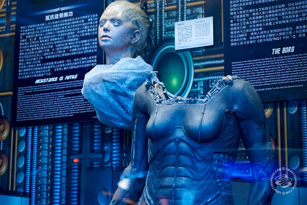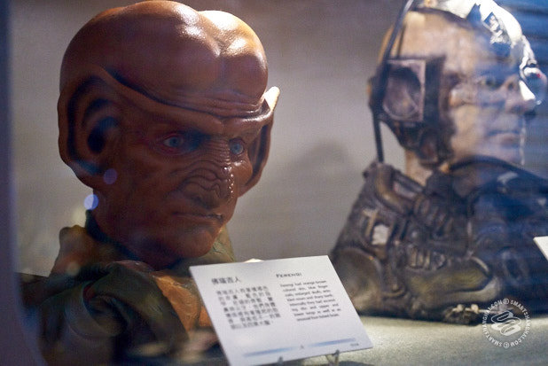 Hailing on all frequencies! Hailing on all frequencies! Open a channel, Mr. Worf. Attention, all dweebs and geeks in the sector. Attention: nerdlingers, dinguses, and dorkus malorkuses! Huge news! Wondrous news! Stupendous news! Out in Hongqiao — (truly, the sucky frontier if you ask me) — right next to the Starport Hongqiao Train Station in some ghost mall called “The Hub” — (we’re talking Delta Quadrant here, straight-up) — is Star Trek: The Exhibition, a massive and magnificent collection of props, costumes, make-up, memorabilia, displays, set pieces, interactive thingies, and more from 50 glorious and infallible years of the Star Trek franchise.