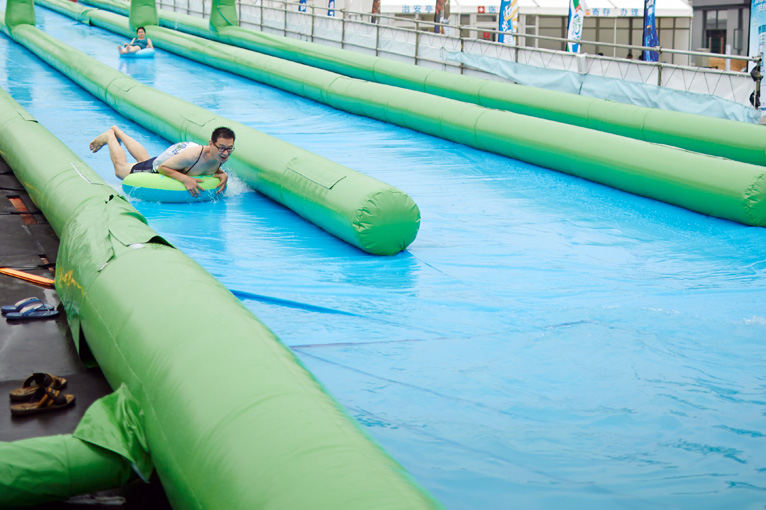 There’s two: Bouncey Water Castle Thing is 60rmb. For 10 minutes. 10-meter By 10-meter Kiddie Pool is 20rmb. For 10 minutes.