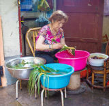 Wrapping with the two women who sling golden triangles of rice, pork, and salted duck in the...