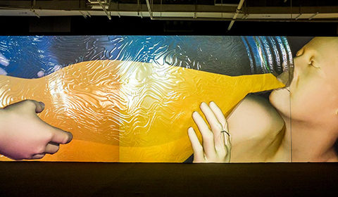 The show focuses on five themes: Flux, Life Forms, Cityscape, Morphogenetic, and Avatar, and does so by surrounding the viewer with psychedelic 360 degree video projection walls, walking anatomy books by the French plastic-surgery artist ORLAN, motion sensor experiments, a map of human emotions drifting around the world through Internet connections and, most impressive, Miao Xiaochun's short film Microcosm, which cynically sums up all of human history.