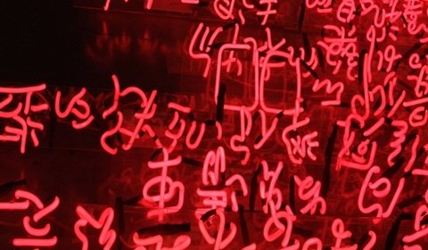 In Shi Yong’s ‘A Bunch of Happy Fantasies’, represented in an installation of neon lights, Chinese characters are written in cursive and upside down. It’s a linguistic challenge, or maybe a challenge to the concept of language itself, to communicate emotion and feeling with syntax and grammar.