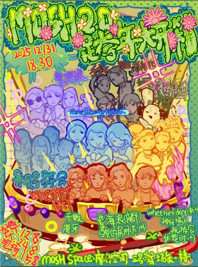 Mosh Space returns! The Yangpu hub for the young and restless - one of last year’s best surprises returns to its new location after shutting its door back in October. And they’re going all out for their opening party - a murderer’s row of some of the scene’s most fierce indie acts. 1000 Failures, known for evoking some of the pop rock and emo scene’s best, join affective and emotionally charged indie trio Nerve Passenger, delicate emo math rockers Zhuyouhui, barbed punk rockers Moya, and Changchun emo punk act Tiny Time. Also visiting will be Neo-psych pop makers whetherday, Chengdu funk pop act Purple Waves, and one of my favorite acts from last year, Suzhou’s Acid Room. A full spread - bring an extra liver or two.