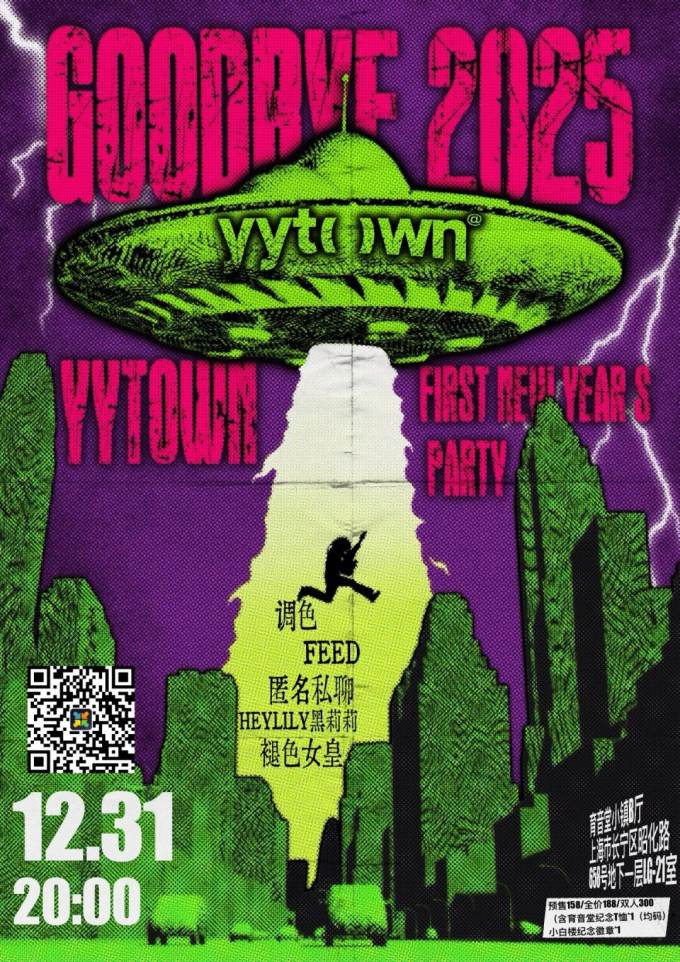Yuyintown has been coming together nicely these past couple of weeks - and there ain’t no better way to celebrate its arrival than a proper New Year’s Eve bash. For the countdown, they’ve rounded up a swell lineup full of riotous bands, including the alt-rockers Nemassle from Hefei, who sway between anthemic dance punk and tender emo-laced jams, and jittery post-punk act FEED, the young and ravenous from Xiamen, who take joy in its sardonic and jagged world. Also joining them are vintage psych-rockers Vanishing Queen and garage rock favorites Hey! Lily! and indie pop bangers Palette.