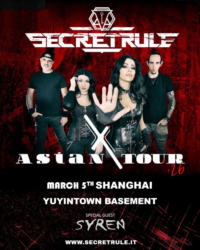 Secret Rule belongs to a breed of Italian bands letting audiences know that female-fronted metal is alive and well. They’ve been pretty active since their inception in 2014 - with nearly ten albums under their belt. Pretty commercial as far as metal goes - chunky riffs, poppy synths, bombastic electronics, powerful rhythms, and massive choruses from singer Angela Di Vincenzo. But if symphonic metal is your jam, then get on over to Yuyintown Basement. Support from Shanghai’s own goth rockers Syren.