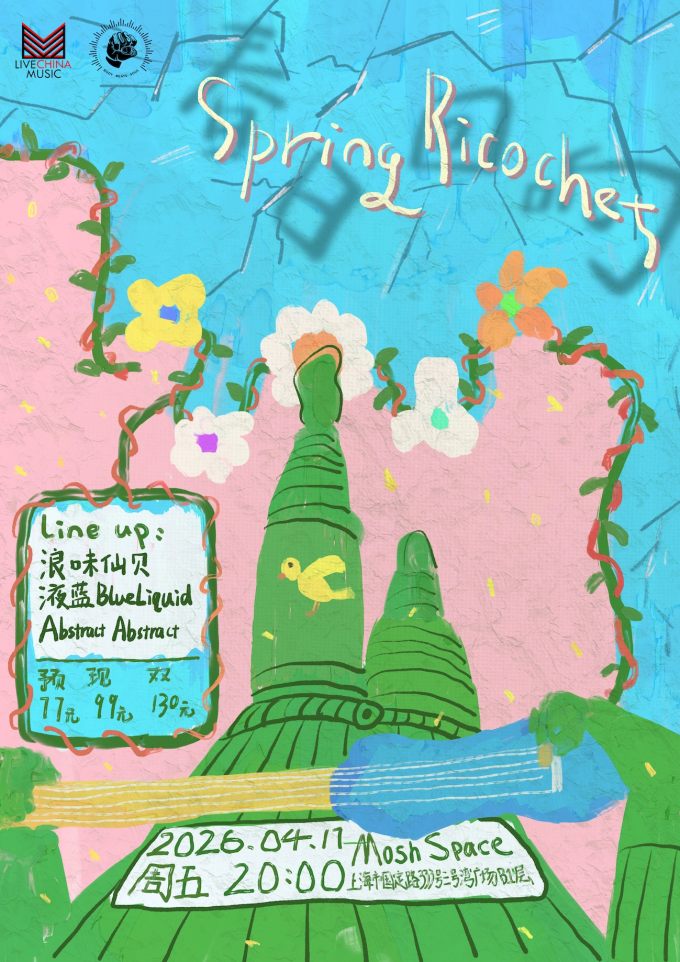 With a spring in their step - LiveChinaMusic welcomes the new season with open arms - evoking its blooming spirit and reverberating fervor with a spry, buoyant, and riotous evening of rock and roll over at Yangpu’s new rock and roll headquarters - Mosh Space. Hangzhou’s Lonely Cookies are one of the indie scene’s most dynamic and affecting acts - crafting guitar pop with fire-cracker vitality and melodic charm. Meanwhile, Nantong’s Blue Liquid taps into a 90s alt sound with riotous affinity whilst finding that sweet spot between noise and pop. Finally, Abstract Abstract is one of the most exciting new acts of Shanghai, mixing jangly pop sensibilities with math rock finesse and scrappy indie zest.