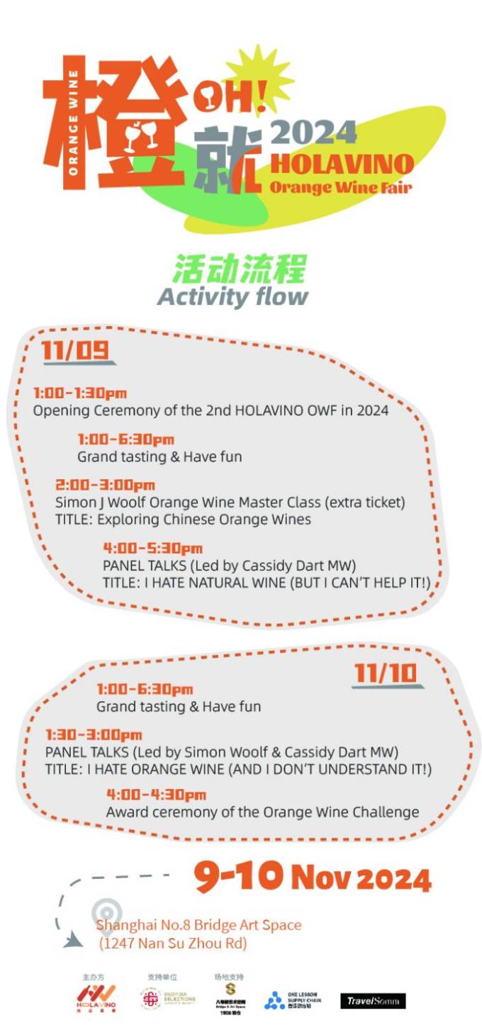 The "Amber Revolution" is back in Shanghai! This year's Orange Wine Fair will take place on November 9 and 10 at the beautiful Bridge 8 Art Space. Explore over 100 wineries from around the globe, showcasing a wide range of orange wines, from Georgia, Italy, and China, paired with delicious food like cheeses and ham.
