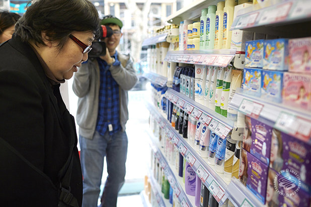 – a grandpa in Changning District, as he walked out of the new XuZhen Supermarket, which opened near Zhongshan Park last Friday. Every item in the shop – from bottles of baijiu and Nongfu Shan water to boxes of condoms and laundry detergent – is completely empty, yet still for sale at regular prices.