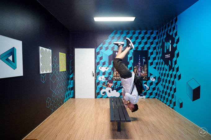 The MOI started in Zagreb and has taken off internationally. They now have museums in 16 cities and counting. This, their first location in China, opened in mid-July. The idea is basically to get your optic nerve so confused that you leave the building questioning the fabric of reality and struggle to resume normal life. Or, hey, just to have a laugh. Behold, the logic-defying stuff you will encounter.