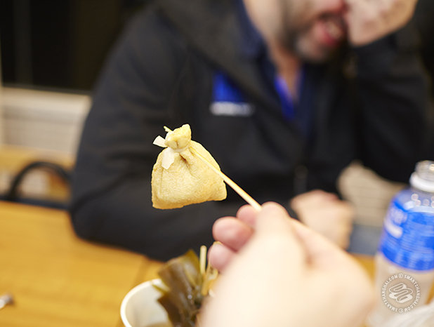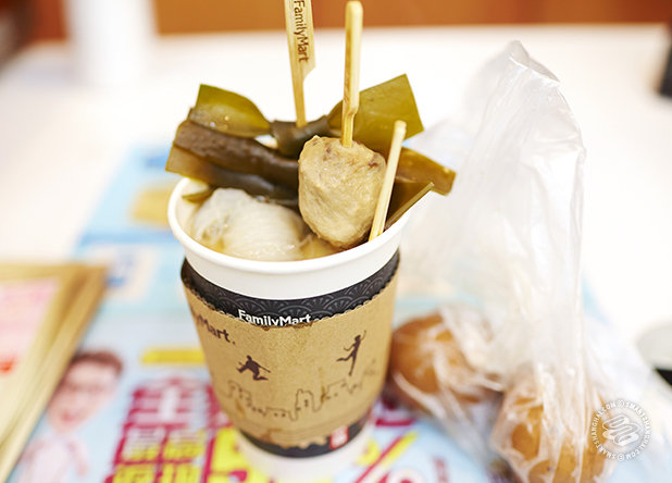 The tea-soaked snacks simmering in the pots at the cashier of Family Mart. We came up with an assortment of delights, including "piss" meat balls, kombu (seaweed), fish roe in a "lucky bag", and konjac (jelly noodle). Plus baijiu. Always the baijiu.