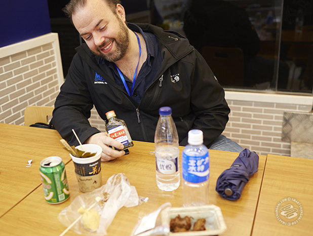 SmSh: Yeah, I guess so. Every convenience store in China has this stuff but I’ve never actually tried it. I guess it’s snack food for people on-the-go. People pressed for time. People pressed for cash. This is the Japanese version I guess? Family Mart is like a Japanese thing. This could be anywhere from not that bad to pretty vile. I don’t know. So how long does it take to get into the Blue Man costume?