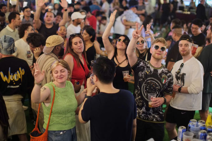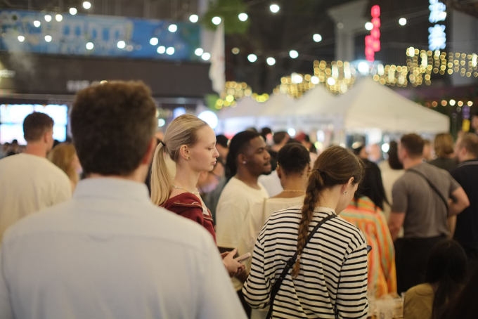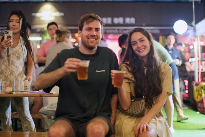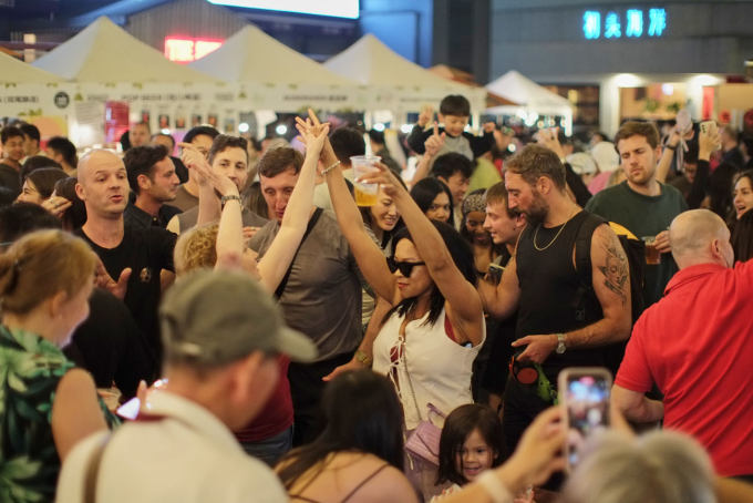 Laowaijie's long pedestrian-friendly street, lined with restaurants, bars, and terraces, naturally turns into a full open-air festival zone.