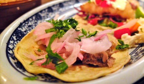 On to the tacos. Apparently, an earlier iteration of these tacos first materialized in Beijing in a Dashilar popup cafe in 2011. Their creator is Taiwanese-American chef Kin Hong, who promptly left Beijing right after that to travel in Mexico for a bit to learn the taco arts from the source. The Taco Bar is the result of these travels, and a general aesthetic is a creative interpretation of a traditional style of Mexican taco. Simple, subtle, and roundly pretty juicy. In my opinion, they're all pretty damn good. Think we doubled down most on the lenguas (braised beef) and the pescados (tilapia). It's all good. Here's a bunch of taco glamor shots.