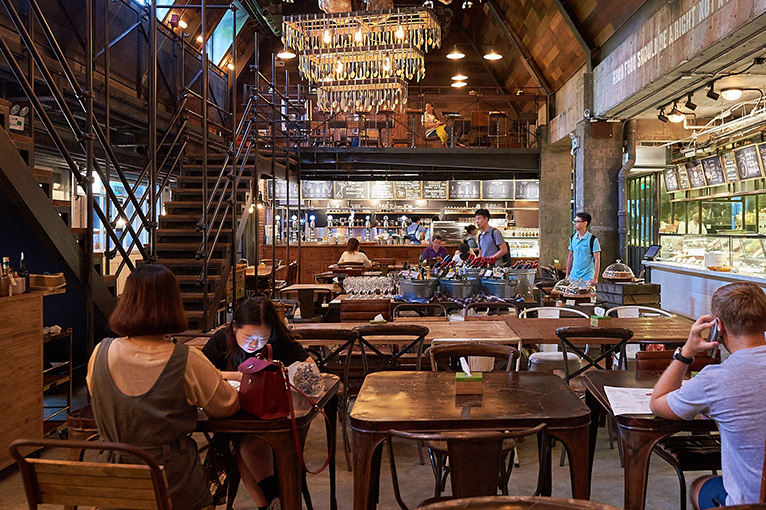 : Green & Safe takes up three floors in the north half of Xintiandi with a small outdoor patio and a giant mess hall inside. The restaurant offers deli-style quick serve where you check boxes on a menu and pay at the counter. The big menu covers seafood, handmade pizzas, pastas, pies, hamburgers, and of course, organic salads. In addition to wines and spices, there's a small selection of produce, frozen meats, and spices in the grocery section. Finally, there's a semi-hidden bar called The Bunker, run in partnership with the owners of former speakeasy Flask, with drinks made with ingredients from Green & Safe's organic farm.