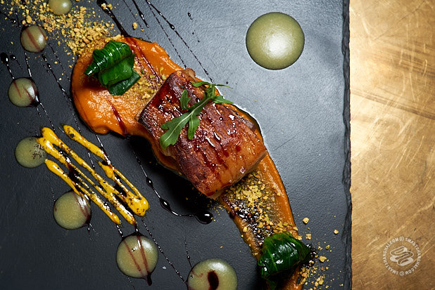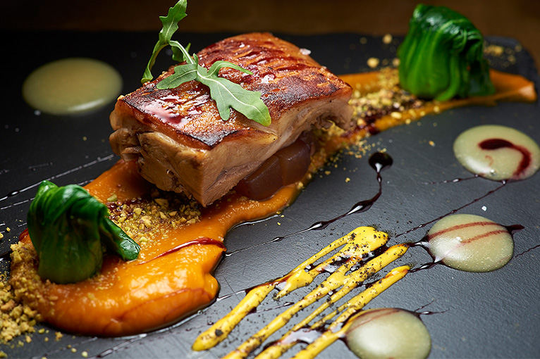 Crispy Skin Suckling Pig - Melon Cru, Port Wine Reduction, Roasted Pumpkin Puree (168rmb)