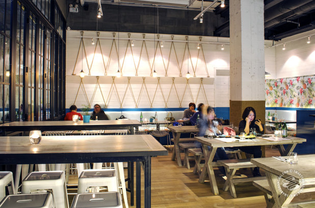 What It Is: Brought to you by Camel Group, Hooked has been tentatively introduced to Shanghai as the baby brother of the Bull & Claw. It’s located in Found 158, right next to Camel’s other, more Luchador-y venue, with a big bright glass panel wall facing into the courtyard. The decor’s like a cross between a beach-front fish and chips shop and the cabin on a cruise ship taking you to Marbella or something.