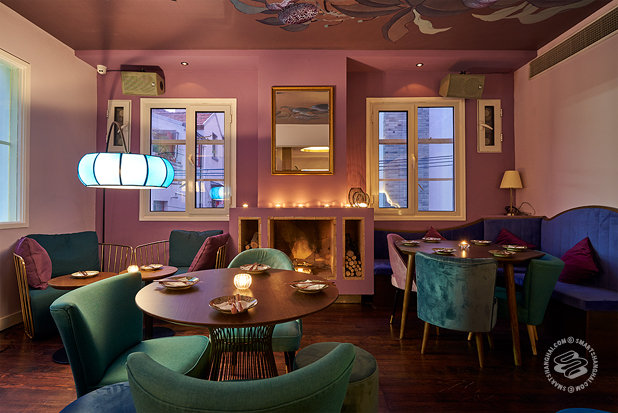 So, in honor of the highest-maintenance consorts in history, we get three floors off Fuxing Xi Lu. From the ground-up, respectively, a lychee-inspired bar, restaurant and lounge. It's cozy, it's whimsical, it has murals and clouds painted on the walls and ceilings. The staff call one of the tables Cinderella because they've got a pumpkin-looking lamp over it. There's a 3-floor mural running up the staircase of the lady Yang herself. It's built, according to Cotton, to reflect Yang's dream. Start with a drink, move up for a sit-down meal, and end the night with music on the top floor.