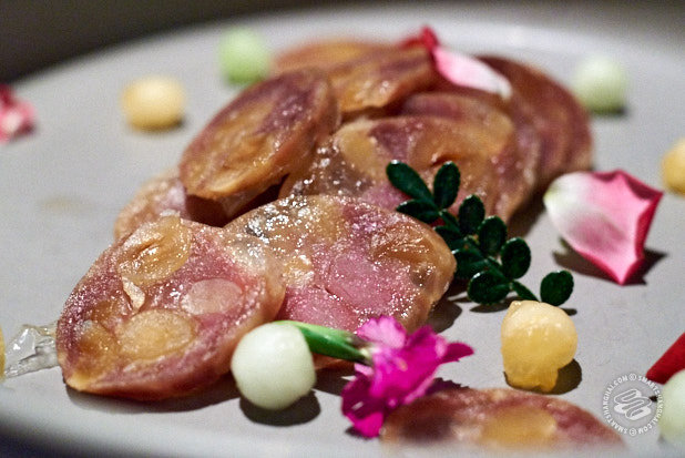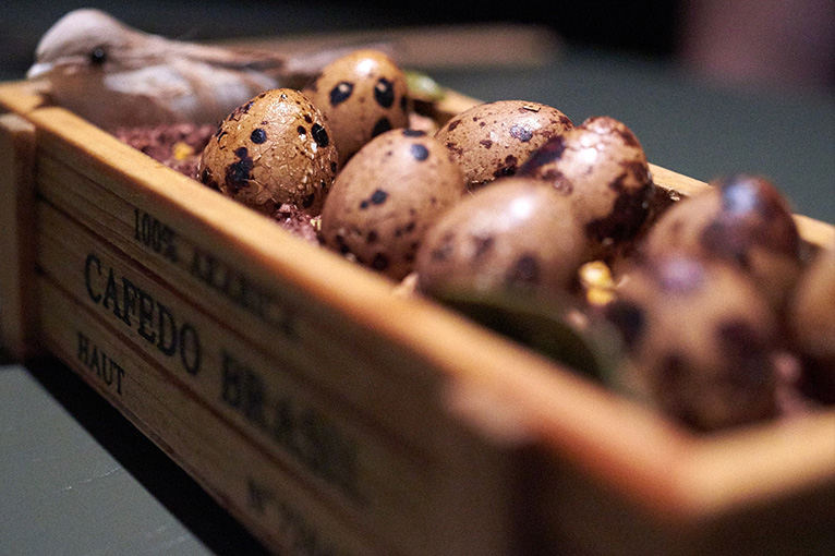 A lot of what we ordered seemed designed specifically sharing in your WeChat Moments, with eating and enjoying as mere afterthoughts. A good example is the Quali [sic.] Eggs Stewed in Rum & Tea. It’s a fancy take on that popular street snack, the tea egg. They're served with a cutesy little fake baby bird with real feathers in a tiny wooden crate full of some unidentified, brown, gritty-looking material. Is it edible? You certainly wouldn't know by looking at it. As it turns out, it's panko breadcrumbs dusted with cocoa powder. Yeah, you could eat it, but you probably wouldn't want to. As for the eggs themselves, meh, they're tiny tea eggs, nothing special.