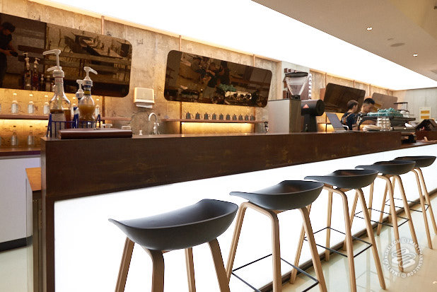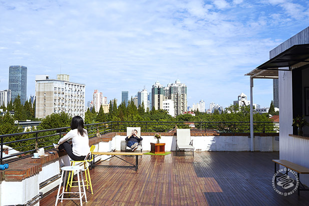 : Extra Time is a cafe and lounge located right on the corner of Changde Lu and Changping Lu, adjacent to Wishbone. Disguised as a sidewalk stand with just a window selling coffee, there is actually a decent sized underground space underneath the low-key, dark wood and concrete exterior. The space has a total of ten private cinema rooms located at each side, a dining area, and a sleek-looking bar in the middle. Extra Time shares the same ownership as M50's new media art space CAC, and its support for the local art scene is clearly presented here as well.