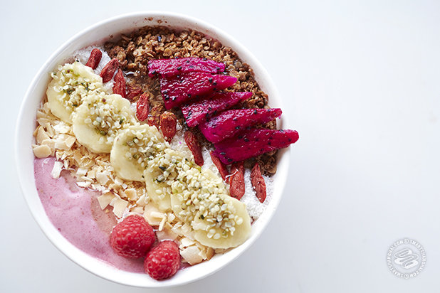 Yogalicious originally started as a pop-up, but they're sticking around. They've got acai bowls at 35rmb for the small and 50rmb for the regular -- those are thick smoothies, topped with nuts, seeds, and berries, eaten from a bowl. Then there's oatmeal porridge for something warmer from 35rmb. Tea is 20rmb. The owner, Angie, also teaches yoga on the rooftop. Drop-ins are 200rmb and you get a free bowl with your one hour yoga session. In the winter, the yoga will be combined with interval training. This is actually one of the nicer rooftops in the city -- you could come for the view alone.