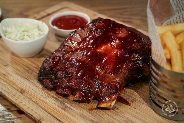 The ribs're good. Melt-off-the-bone, just-the-right-amount-of-fat, not-overpowered-by-sauce good. 10/10 ribs. Somewhere, a bald man with a beard could explain why exactly they're that good. Maybe they're smoked in a barn. Maybe the marinade is made from genuine long-haul truck wheels. Whatever. They hefty, too. A rack o' ribs'll really sit in your belly for a good solid while. Get yourself a chunky sheet-metal belt buckle with your name on it to hold that sucker in place. If the price puts you off a bit, there's talk of an all-you-can-eat BBQ Sunday brunch. Might be worth a [Deals Tested].
