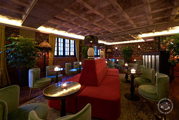 The bar's a plushy, busily decorated lounge with the odd homage to the fantasy 1930s version of Shanghai. The drinks menu features original cocktails in the 90-95rmb range separated into thematic sections. The barrel-aged Chinatown Manhattan (95rmb) off the "Asian Twist" portion, for example, replaces the usual vermouth with huangjiu.