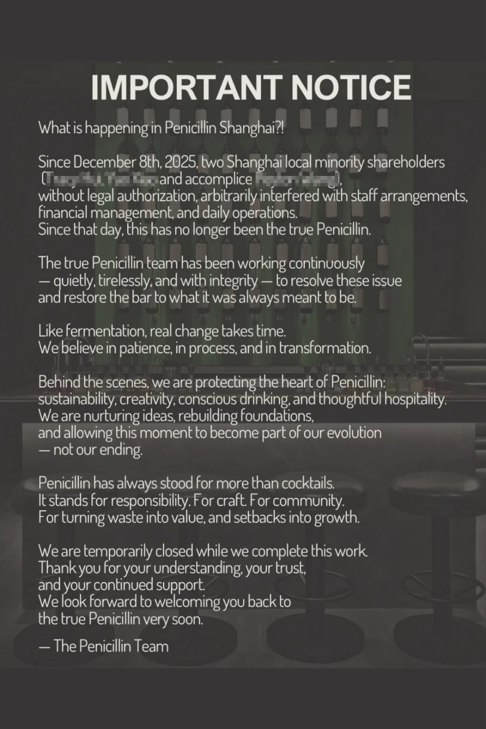 The official statement from Penicillin's legal representative revealed that during the ongoing dispute, the bar could not maintain the service quality expected of it. The management plans to reopen once the issue is resolved, promising a fresh start. However, this closure has left both regular customers and the wider bar community in shock, especially considering the high-profile reputation the bar quickly built.