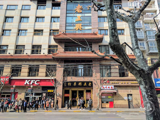 Xing Hua Lou has chains all over Shanghai and their products can be found on the shelves of supermarkets and convenience stores across the city. Xin Hua Lou's main restaurant is on Fuzhou Lu. It has a more stately facade. Many family gatherings happen here everyday.