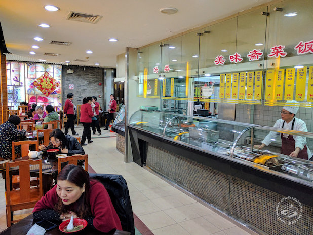 The place is clearly no longer popular. It's worn-out and dirty, and new customers, especially ones from a Western background might get confused by the mock-meat menu. Xiao long bao, for example, has a stuffing made with the mixture of mashed potato, pea, and corn. The second floor serves various "meat" and "seafood" dishes, all using soybean, kongjac or tofu to mimic the texture of flesh. The taste in some of the dishes leaves much to be desired.