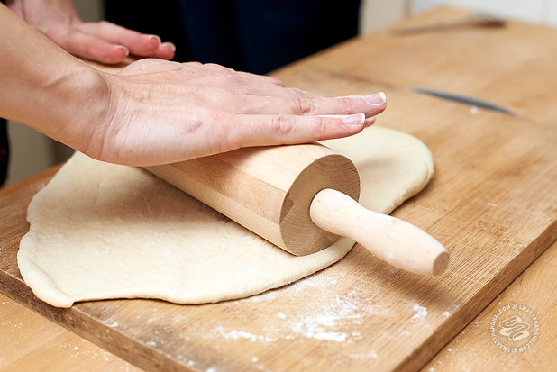 6. Using your hands or a rolling pin, flatten and shape the dough into desired shape and thickness.