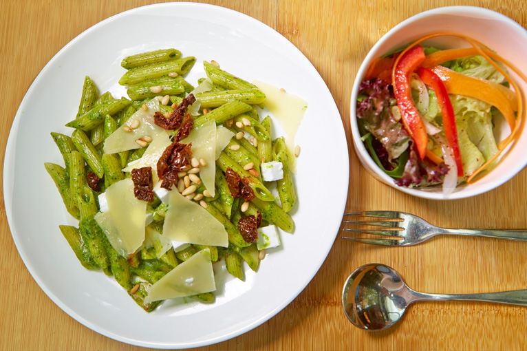Food: Unremarkable but reasonably good "power food" (they call it a "power food station"). Lots of salads, wraps and the like. Not a dedicated vegetarian place, but definitely one of the better places in the area to head to if you are one. Good pasta. Combo meals include choices like masala lamb and paprika chicken.