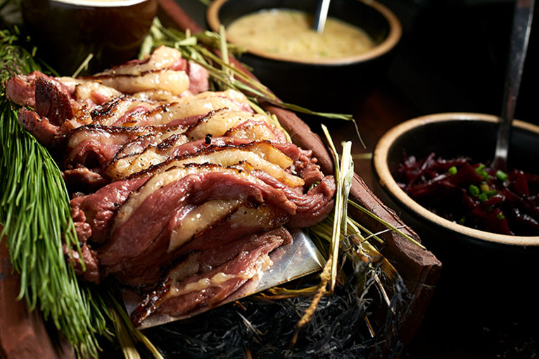 "Venison heart, as it is" - New Zealand venison heart, fermented carrot, grilled bone marrow, celery leaf, and smoked oil - 88rmb