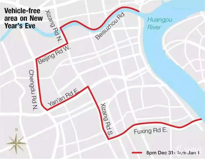 As of now, this year's official traffic control plan hasn't been released yet, but in previous years, the police have cordoned off a large section of the Bund to traffic. During that time, taxis and Didi aren't able to pick up or drop off passengers within the restricted area. Based on past years, the no-traffic zone is typically in effect from 8pm on December 31 to 1am on January 1.