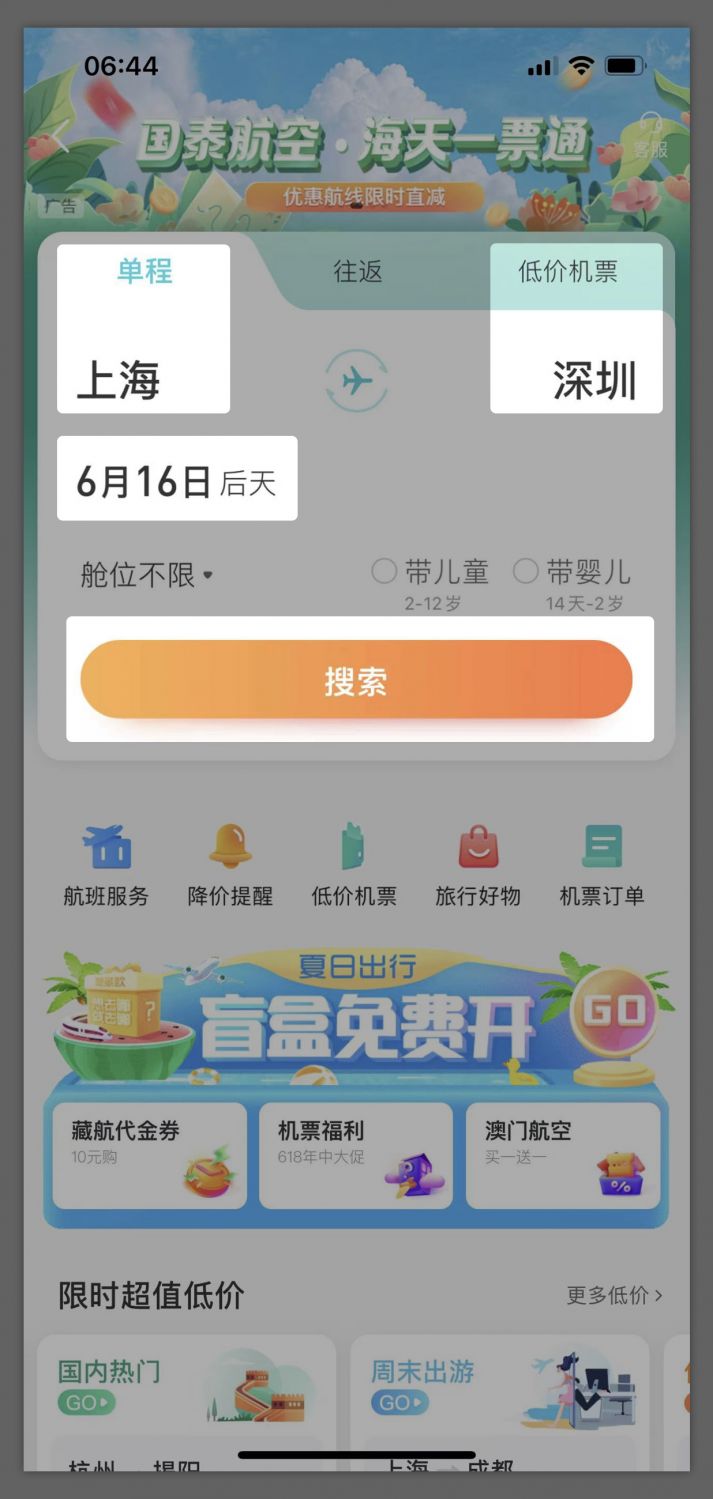 2. The first time you do a search, the restrictions information will pop up automatically, or you can check it on the flights page. They are usually stick the restrictions to the top of the screen.
