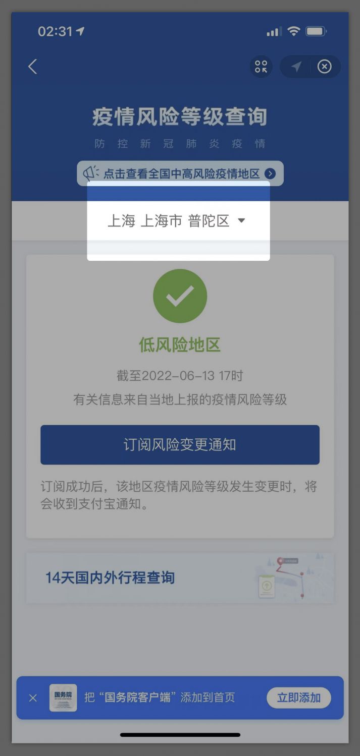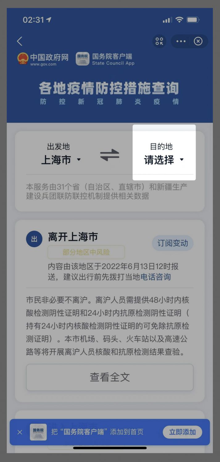 If you want to search out the travel and quarantine regulations for a specific destination in China, you can find the results through "国务院客户端" on Alipay and WeChat: