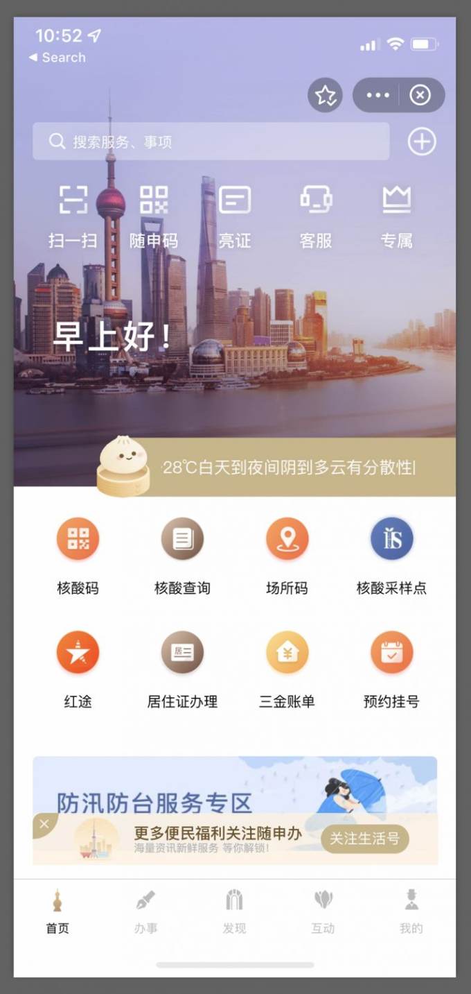 2) In Alipay and WeChat, search for 随申办 to get to the landing page of the suishenban app inside Alipay and WeChat