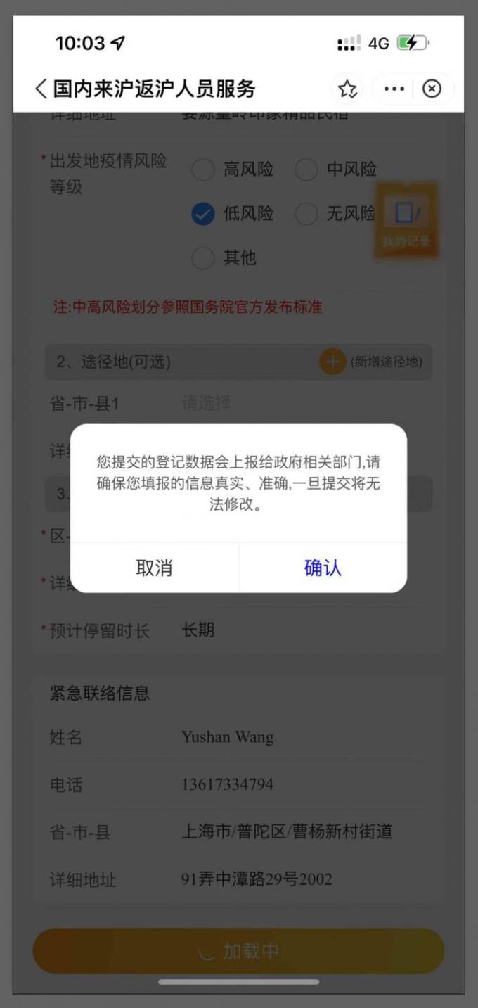 6) You'll see a confirmation window telling you that the information will be sent to the relevant government departments and has to be accurate. Click 确认 to confirm.