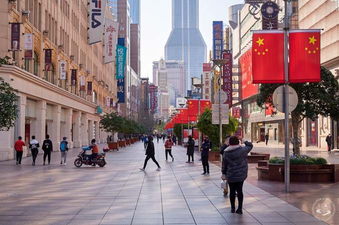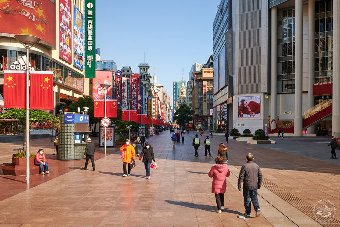 The Nanjing Dong Lu walking street was not a complete ghost town, but you'd have to try hard to bump into someone.