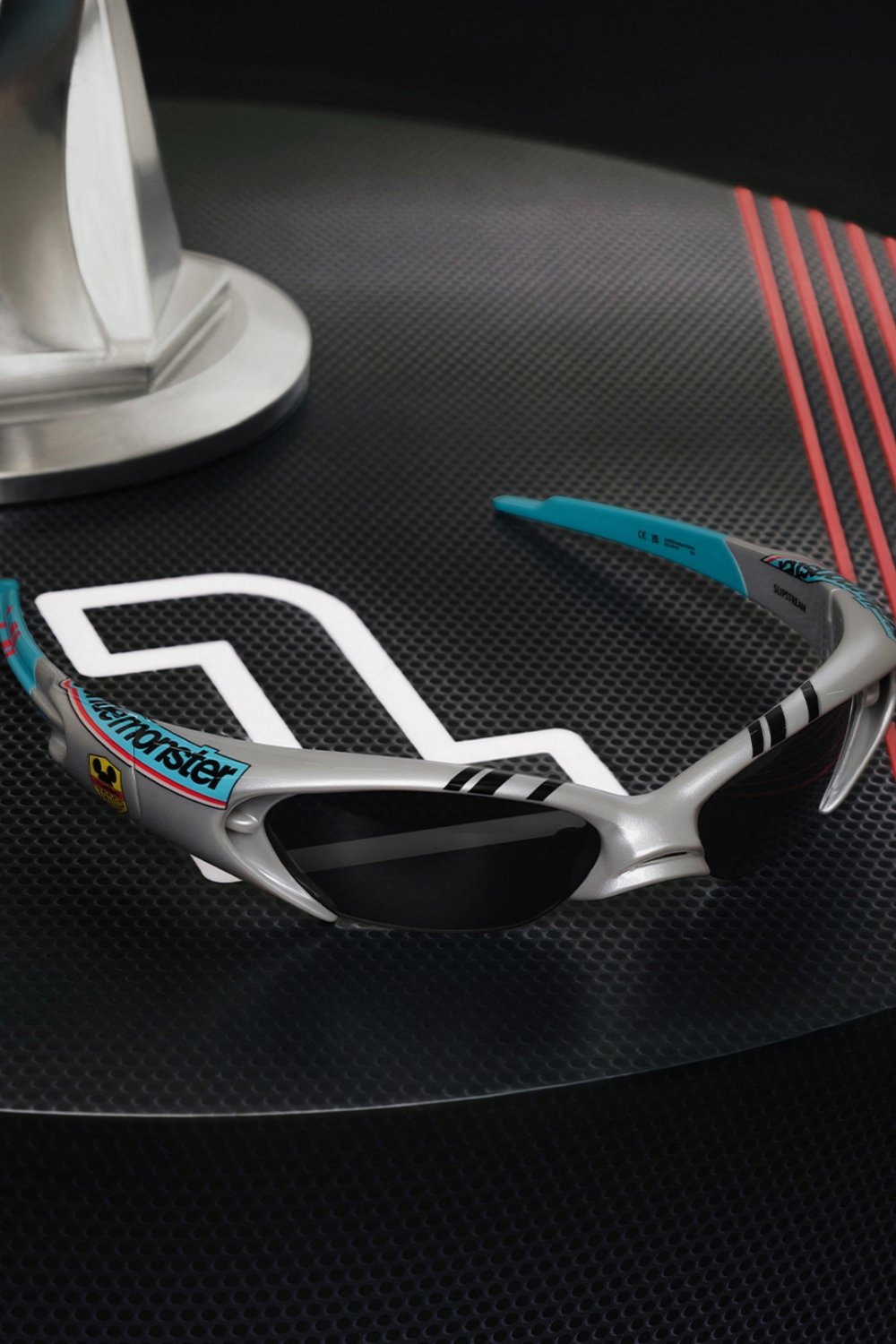 The collection includes eight futuristic frames made from lightweight materials with sharp, aerodynamic shapes. The headline pieces are three collaboration designs with Disney and F1, blending racing visuals with Mickey Mouse and friends. It's an unusual pairing: cartoon nostalgia meets high-performance motorsport.