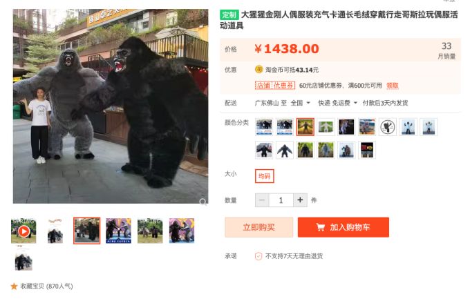 People say that "size doesn't matter". But for those who think that's bullsht, there's King-Size King Kong's obviously for dudes with big dongs. Ahhh ryhming and alliteration. Might be fun to rock one of these and crash a kid's halloween event. (No, don't do that Shanghai)