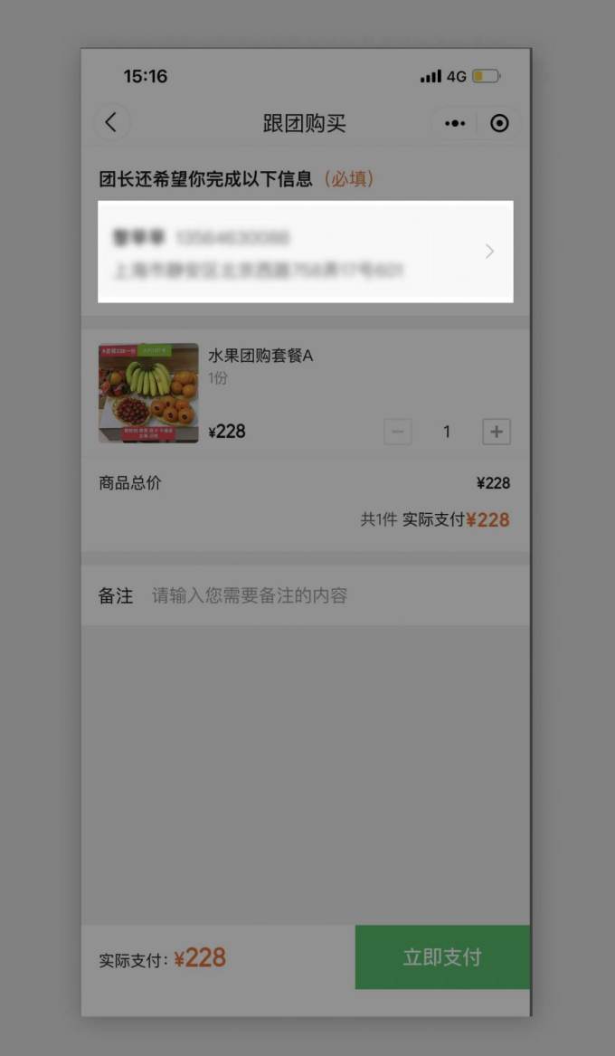 Join the group buy with the large green button. The rest of the checkout process then looks again similar as other e-commerce apps.