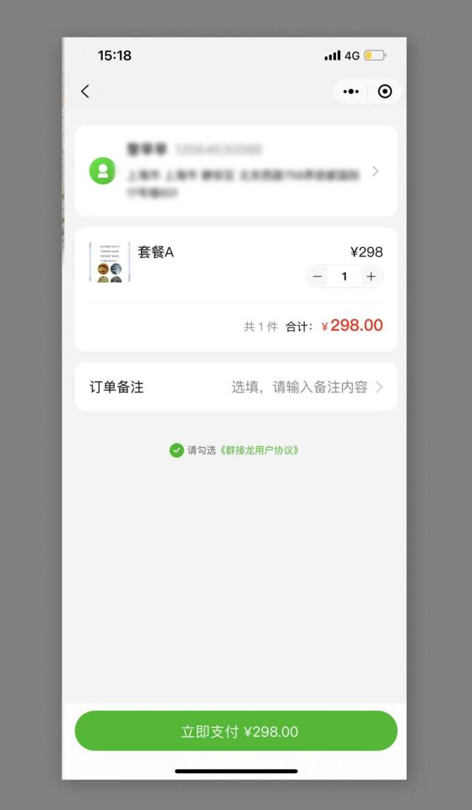 That's it. Usually the follow up, if the group purchased got executed and how and where it will get delivered gets discusse in the WeChat group chats.