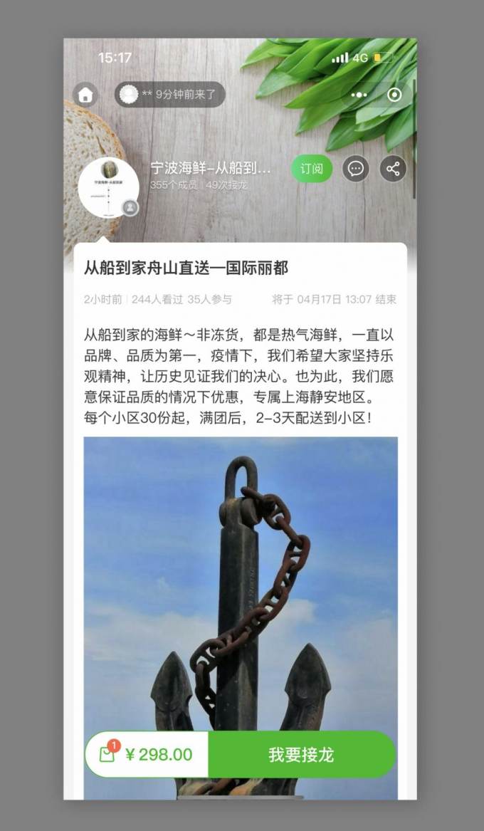 This is the landing page of 群接龙 for a fish group buy.